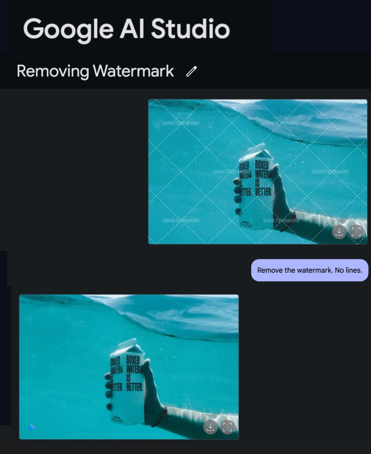 Simply type: “Remove watermarks.”